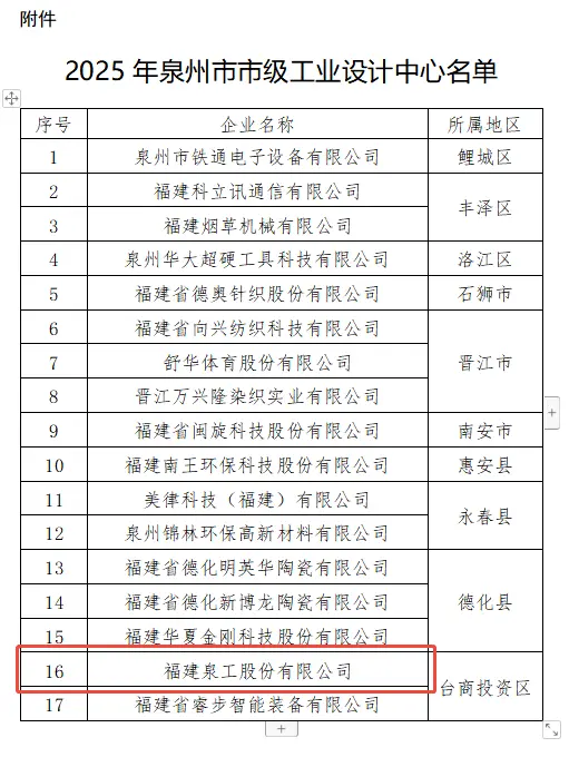 「泉州市工業デザインセンター認定管理措置」によると、評価される企業は工業デザインへの投資割合、特許数、設計チームの規模、産業界との研究協力の深さなどの基準を十分に満たしており、業界の実証・推進効果が顕著でなければならない。近年、Quangong Group は継続的に工業デザインの革新を進めており、国内外の重要な工業デザイン賞を複数受賞し、11 の国家規格および業界規格の策定を主導または参加しています。