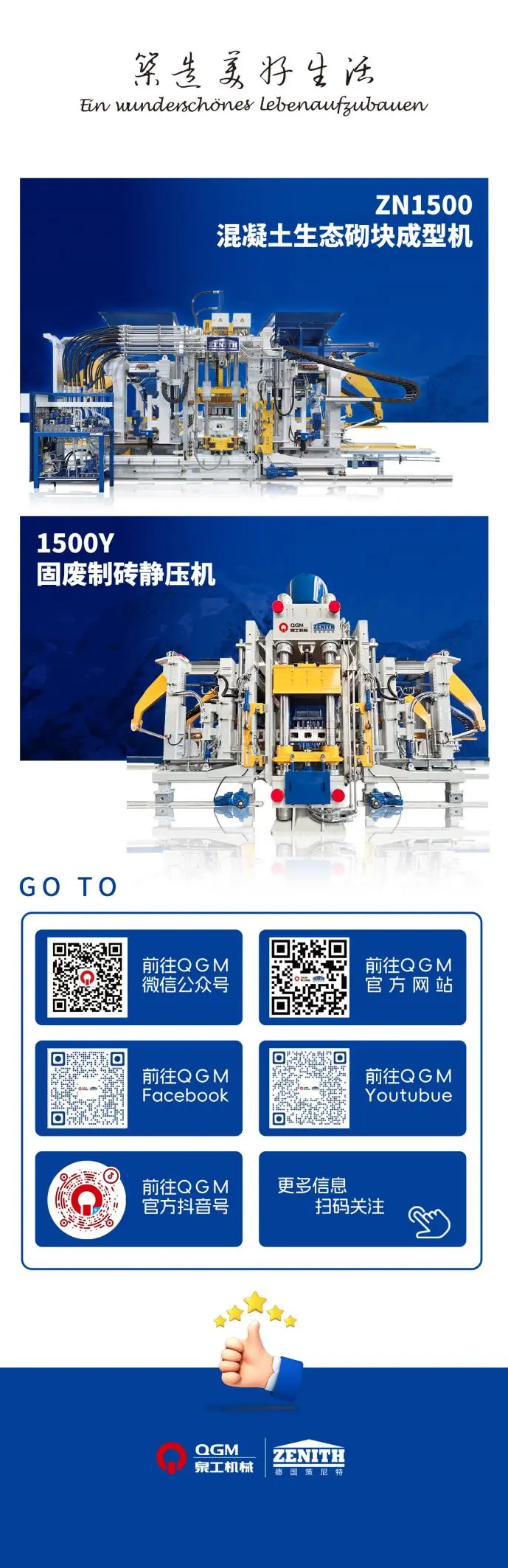 Quangong ZN シリーズ製品は、ドイツの生産技術とプロセスに従って中国で厳密に生産されています。国内ブランドのブロック成形機と比較して、ZN シリーズ製品はスムーズな動作性能、より高いレンガ製造効率、より低い故障率を備えています。性能、効率、省エネ、環境保護の点で、中国の同様の製品よりもはるかに優れています。