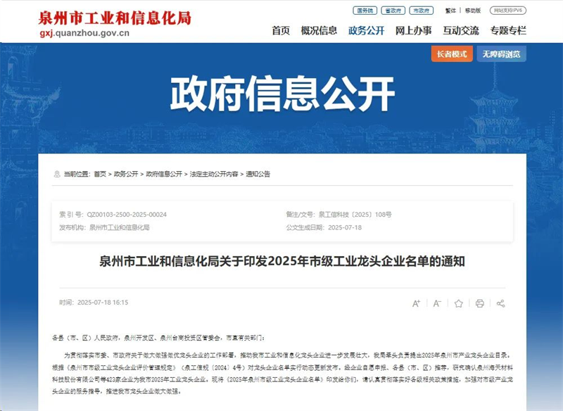 このほど、泉州市工業情報化局は「2025年泉州市産業主導企業リスト」を正式に発表した。 Fujian QGM Co., Ltd. は、インテリジェント機器の研究開発、グリーン製造、世界市場拡大における包括的なリーダーシップを活かし、地方自治体レベルの有力産業企業 423 社の中に選ばれました。