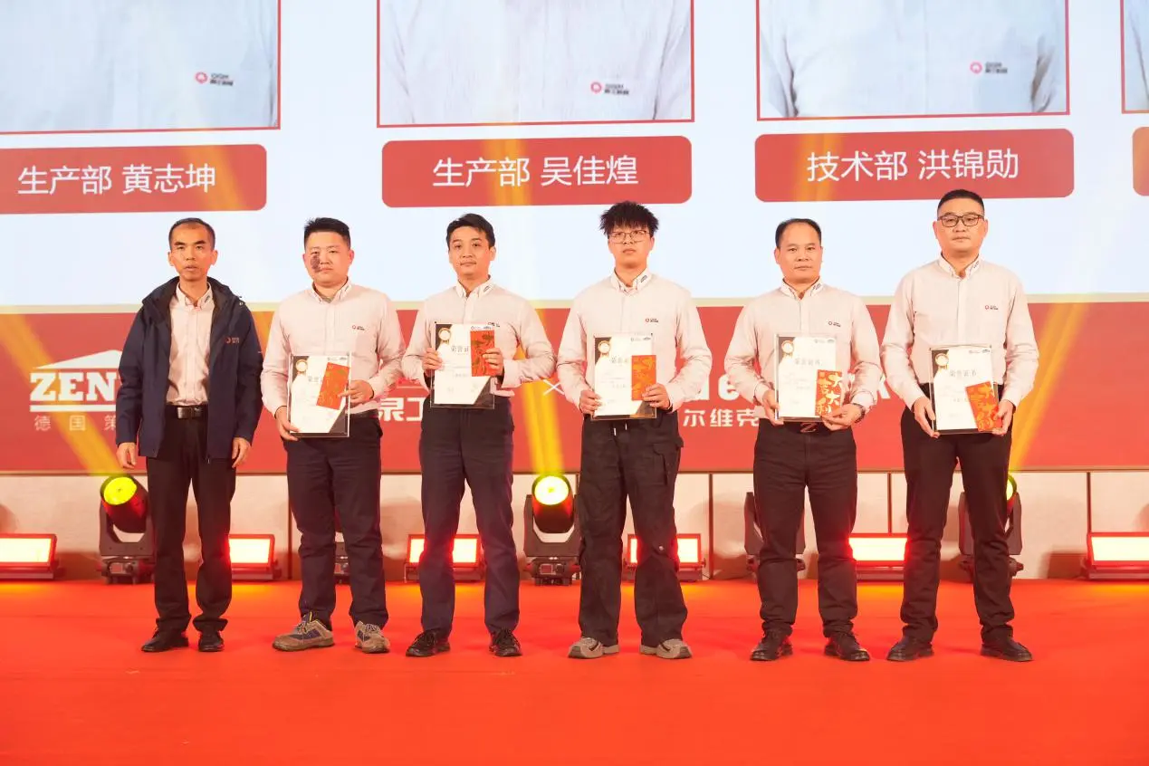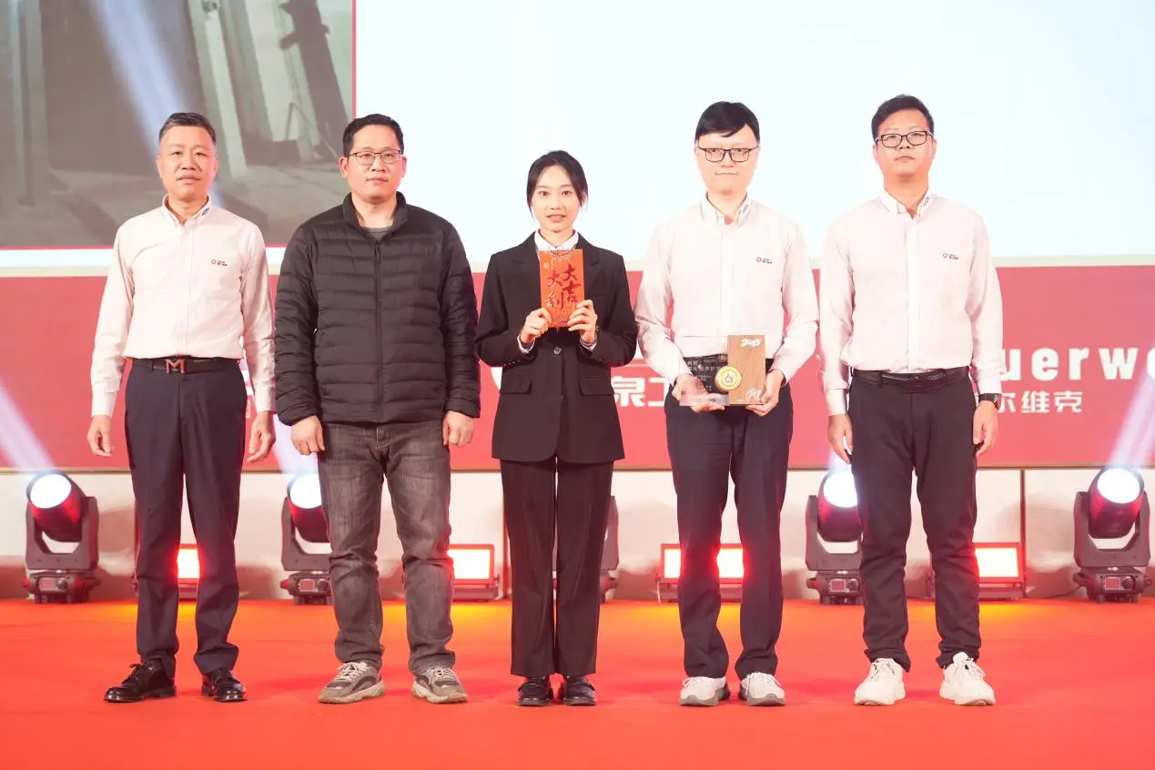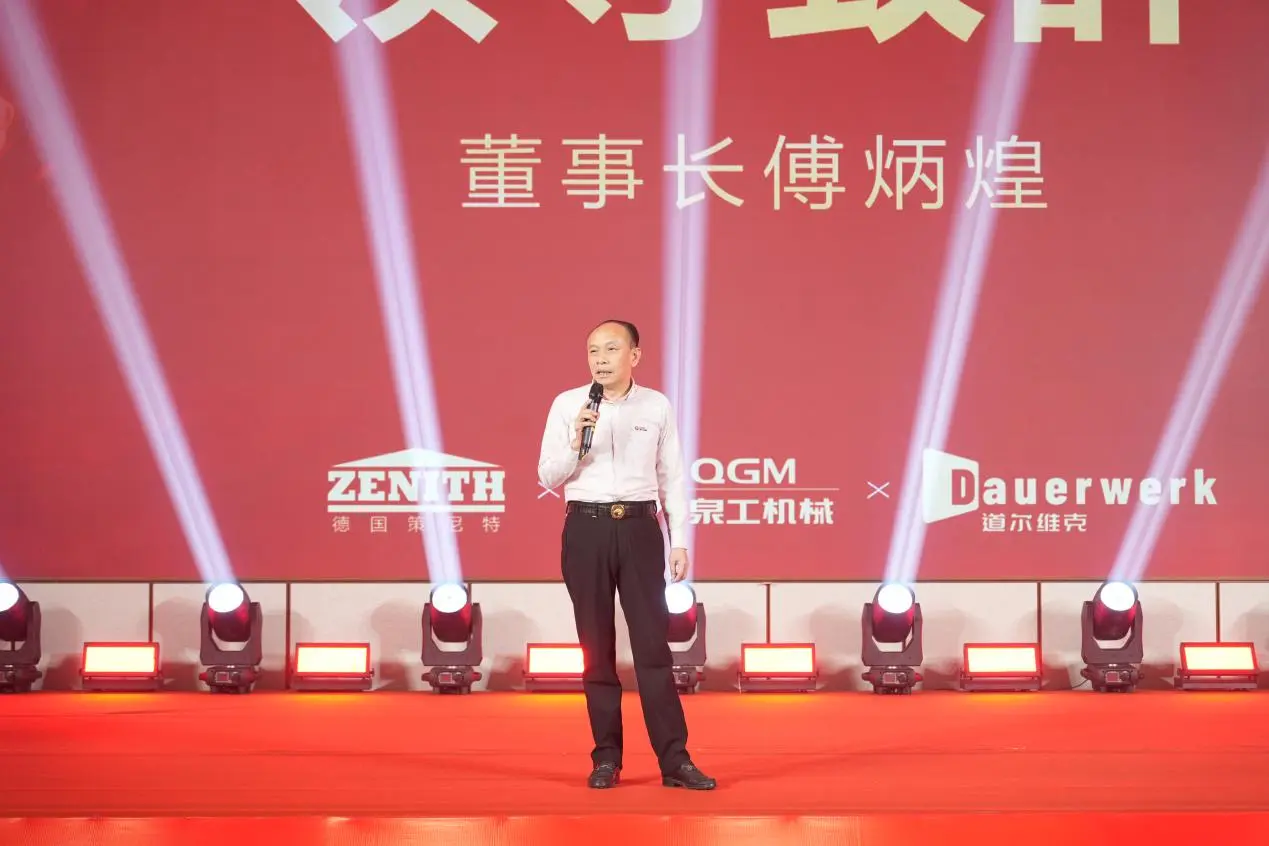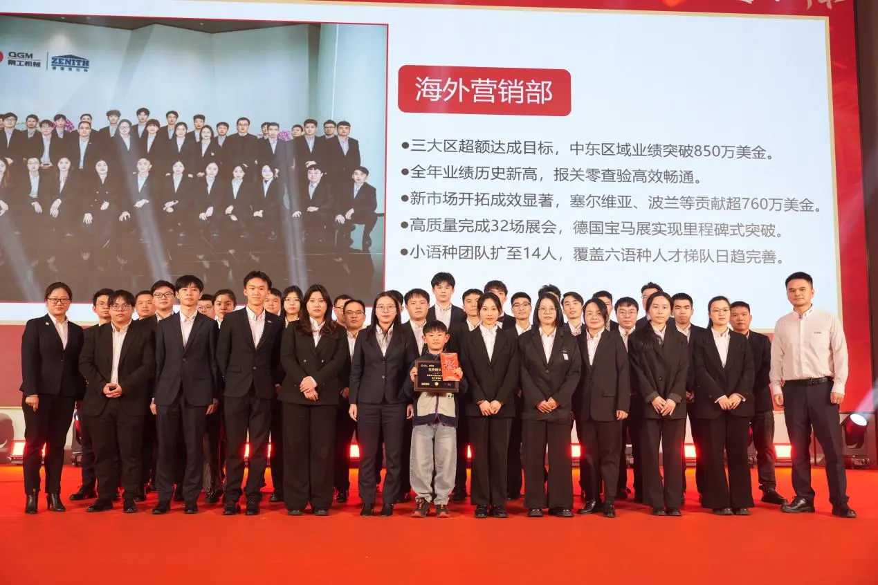 続いて、Quangong Machinery Co., Ltd.のゼネラルマネジャーであるFu Xinyuan氏が閉会の挨拶を述べた。同氏は、複雑かつ刻々と変化する世界情勢の中で、会社の着実な発展は全従業員の共同の努力と切り離せないと指摘した。 2025年には海外マーケティングチームが初めて年間業績目標を達成し、国内市場も状況の変化に積極的に適応し、いくつかの主要都市でモデルプロジェクトの立ち上げに成功し、顧客から高い評価を得た。今後を見据えて、同社は3ブランド並行戦略を正式に推進する予定である。Cenitはウルトラハイエンド市場に注力し、Quangongはミッドレンジからハイエンド市場を深く育成し、Daorvikはミッドレンジ市場にサービスを提供し、継続的に世界競争力を強化する。彼はまた、春節の前後に設置と試運転作業を行うために引き続き海外の最前線に向かうチームに心からの感謝の意を表した。
