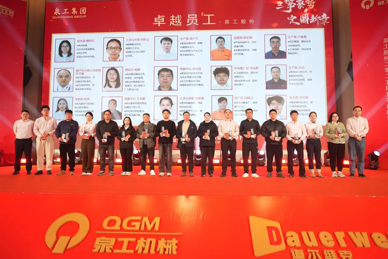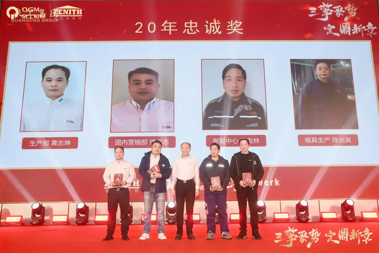 年次総会中には、10年、20年、30年忠誠賞の盛大な授賞式も開催されました。会社とともに歩み、共に成長してきた従業員グループがステージに上がり、Quangong Machinery Co., Ltd.の着実な発展とその永続する企業文化の強固な基盤を十分に実証しました。